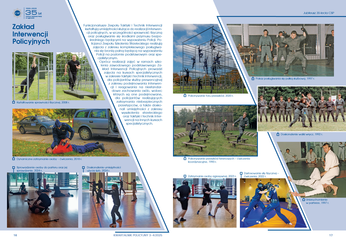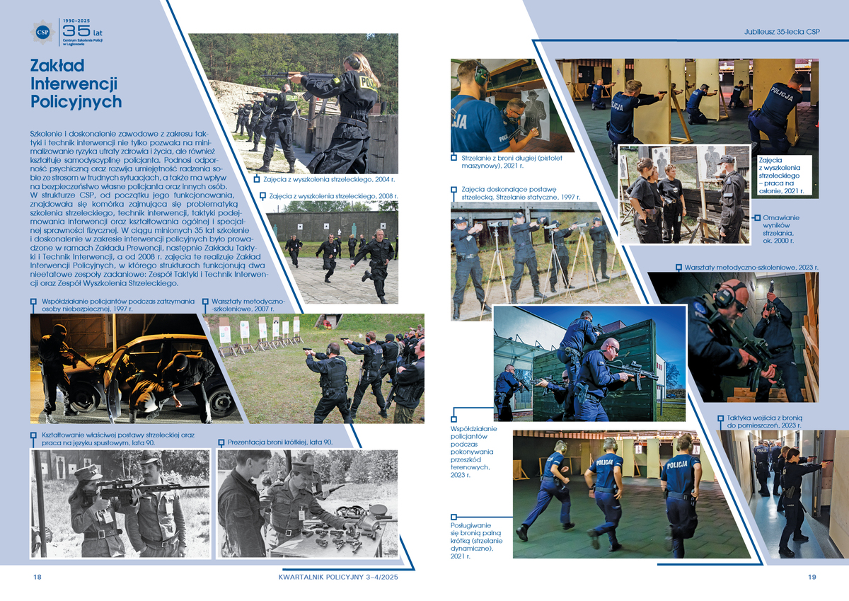W strukturze CSP, od początku jego funkcjonowania, znajdowała się komórka zajmująca się problematyką szkolenia strzeleckiego, technik interwencji, taktyki podejmowania interwencji oraz kształtowania ogólnej i specjalnej sprawności fizycznej. W ciągu minionych 35 lat szkolenie i doskonalenie w zakresie interwencji policyjnych było prowadzone w ramach Zakładu Prewencji, następnie Zakładu Taktyki i Technik Interwencji, a od 2008 r. zajęcia te realizuje Zakład Interwencji Policyjnych, w którego strukturach funkcjonują dwa nieetatowe zespoły zadaniowe: Zespół Taktyki i Technik Interwencji oraz Zespół Wyszkolenia Strzeleckiego.