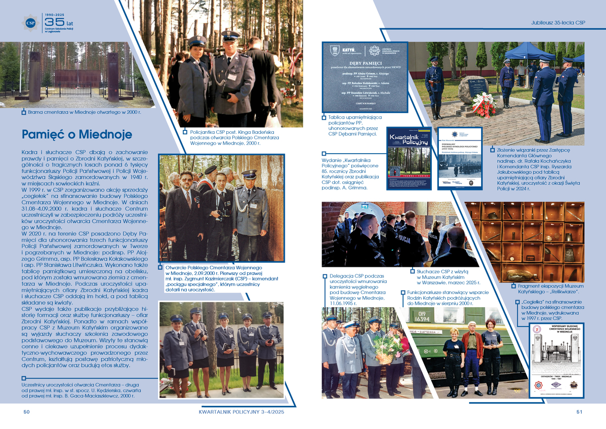 Kadra i słuchacze CSP dbają o zachowanie prawdy i pamięci o Zbrodni Katyńskiej, w szczególności o tragicznych losach ponad 6 tysięcy funkcjonariuszy Policji Państwowej i Policji Województwa Śląskiego zamordowanych w 1940 r. w miejscach sowieckich kaźni.