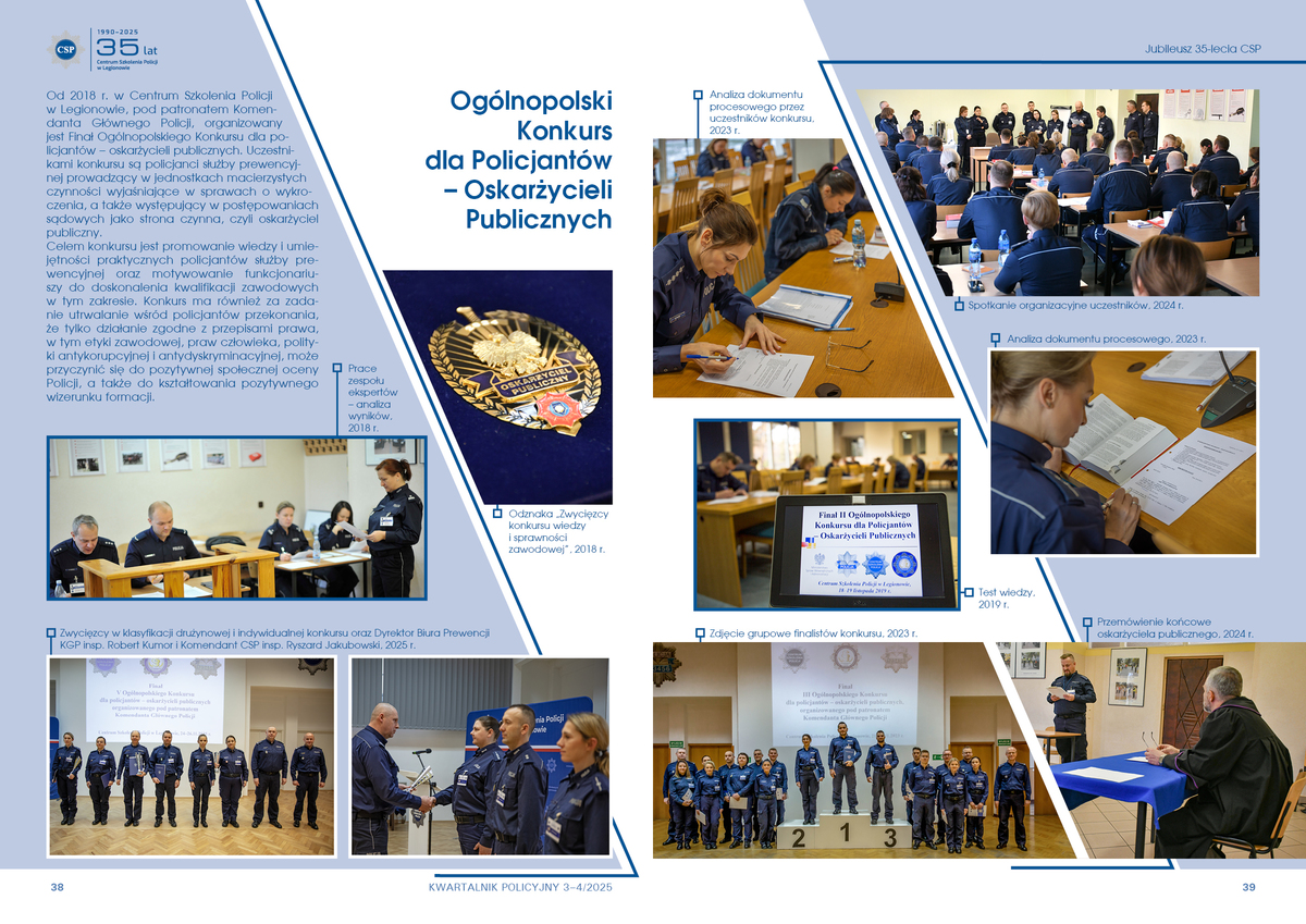 Od 2018 r. w Centrum Szkolenia Policji w Legionowie, pod patronatem Komendanta Głównego Policji, organizowany jest Finał Ogólnopolskiego Konkursu dla policjantów – oskarżycieli publicznych. Uczestnikami konkursu są policjanci służby prewencyjnej prowadzący w jednostkach macierzystych czynności wyjaśniające w sprawach o wykroczenia, a także występujący w postępowaniach sądowych jako strona czynna, czyli oskarżyciel publiczny.