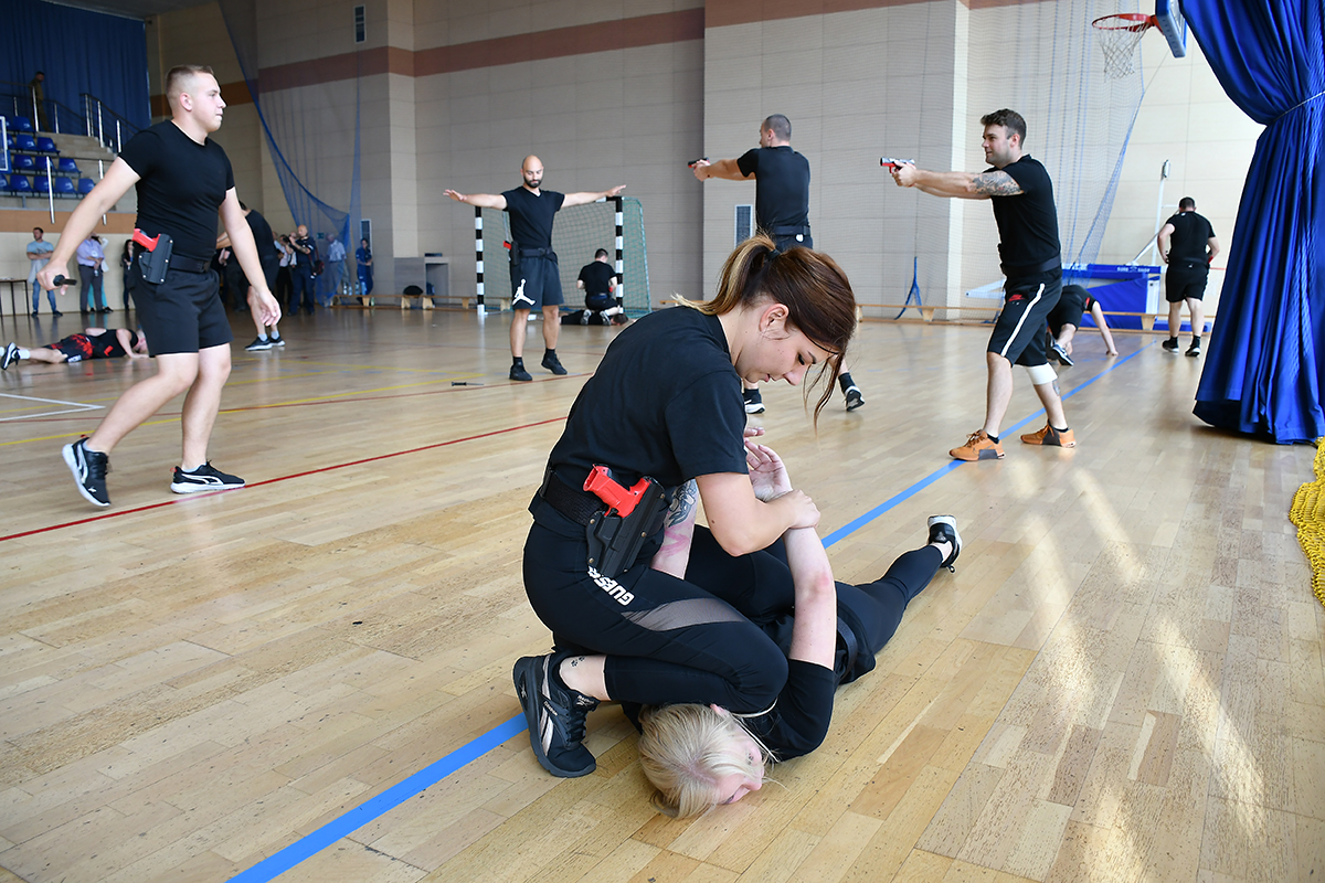 - prezentację zajęć z zakresu wyszkolenia strzeleckiego, stanowiącego istotny element przygotowania funkcjonariuszy do działań w sytuacjach kryzysowych, przeprowadzoną w Zespole Strzelnic CSP; uczestnicy mogli również zapoznać się z trenażerem oraz bronią bojową; osobą odpowiedzialną za tę część był mł. insp. Adam Kuligowski, Kierownik Zakładu Interwencji Policyjnych.