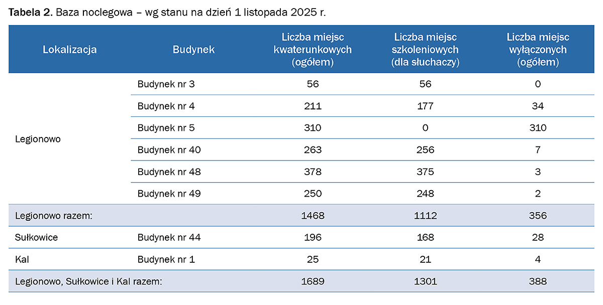 Podkreślenia wymaga fakt, że Centrum Szkolenia Policji w Legionowie, realizując proces dydaktyczny, wykonuje również zadania związane z zakwaterowaniem policjantów, którzy zabezpieczają wydarzenia i imprezy masowe na terenie Warszawy i okolic.