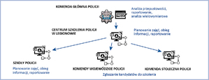 Pozostałe jednostki uczestniczące w procesie – KGP, KWP, szkoły i ośrodki szkoleniowe Policji będą zdalnymi beneficjentami środowiska sprzętowego i programistycznego uruchomionego centralnie w CSP w Legionowie.