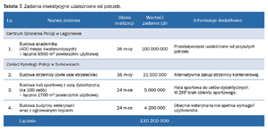 2. Rozszerzenia zakresu szkoleniowego policjantów realizowanego w Zakładzie Kynologii Policyjnej w Sułkowicach poprzez zmodernizowanie i rozbudowanie istniejącej infrastruktury. Stworzy to możliwość realizowania kursów podstawowych dla policjantów.