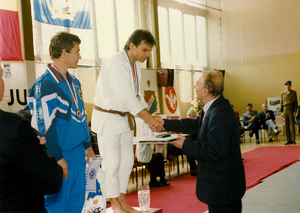 No i dokonało się. Kiedy dowiedziałem się, że Zakład Wychowania Fizycznego w Centrum Szkolenia Policji w Legionowie szuka instruktorów sportów walki, jako były zawodnik judo ,,Floty” Gdynia zgłosiłem swój akces. Po testach psychologicznych zapadł wyrok – „ambitny”. Przymiarka munduru odbyła się z małymi kłopotami, wzrost 164 cm w ,,komunie” by nie przeszedł, ale w nowej rzeczywistości ktoś doszedł do wniosku, że rozumu na metry się nie mierzy. Przekroczyłem bramy CSP, na terenie 60 ha znajdowały się: budynek sztabowy, budynek dydaktyczny, budynek administracyjny, 4 budynki kwaterunkowe, stołówka, strzelnica, hala widowiskowo-sportowa z dwiema dodatkowymi salami do sportów walki, siłownią i basenem, boisko, obok wojskowy tor przeszkód, magazyny przy starej kolejowej rampie, warsztaty, pralnia, baraki wojskowe jednostki wartowniczej, autodrom, plac apelowo-manewrowy, pracownicze ogródki działkowe. Przed dostępem osób postronnych Centrum ochraniały ,,wysunięte placówki Westerplatte”, czyli biura przepustek przy każdej z dwóch bram wejściowych – głównej od frontu i bocznej od strony osiedla. Z terenu został wydzielony ,,Dworek”, gdzie można było potańczyć i napić się piwa. A od czasu do czasu przywołać do porządku miejscowych zza płotu i pokazać, ,,kto tutaj rządzi”.