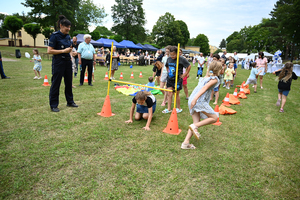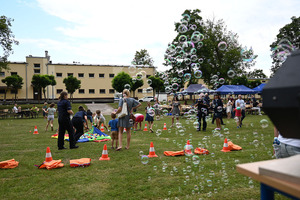 Zwieńczeniem dnia był piknik rodzinny, w którym uczestniczyli wszyscy zaproszeni goście oraz rodziny naszych funkcjonariuszy i pracowników. Na uczestników czekały liczne atrakcje: stoiska promocyjne, pokaz sprzętu i wyposażenia, prezentacja „Grupy Rekonstrukcji Historycznej III Okręgu Policji Państwowej. Komisariat w Radomiu”, animacje i konkursy dla dzieci, a także wspólne świętowanie przy poczęstunku i słodkiej niespodziance. Mali goście mogli również odkrywać sekrety „Miasteczka Smerfów”, stworzonego przez niezawodną Ochotniczą Straż Pożarną z Legionowa.