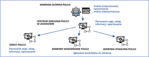 Pozostałe jednostki uczestniczące w procesie – KGP, KWP, szkoły i ośrodki szkoleniowe Policji będą zdalnymi beneficjentami środowiska sprzętowego i programistycznego uruchomionego centralnie w CSP w Legionowie.