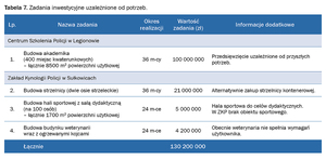 2. Rozszerzenia zakresu szkoleniowego policjantów realizowanego w Zakładzie Kynologii Policyjnej w Sułkowicach poprzez zmodernizowanie i rozbudowanie istniejącej infrastruktury. Stworzy to możliwość realizowania kursów podstawowych dla policjantów.